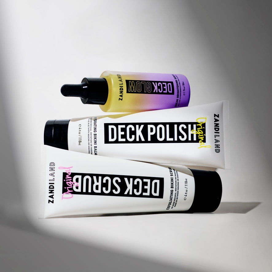 I use the scrub, glow and deck polish and absolutely love your product. I had a big problem with ingrown hairs until I started this routine. I now can keep them away as long as I continue the routine. I am a big fan and feel like a pusher of your product lol. I just can't believe I finally found something that works! Thank you!